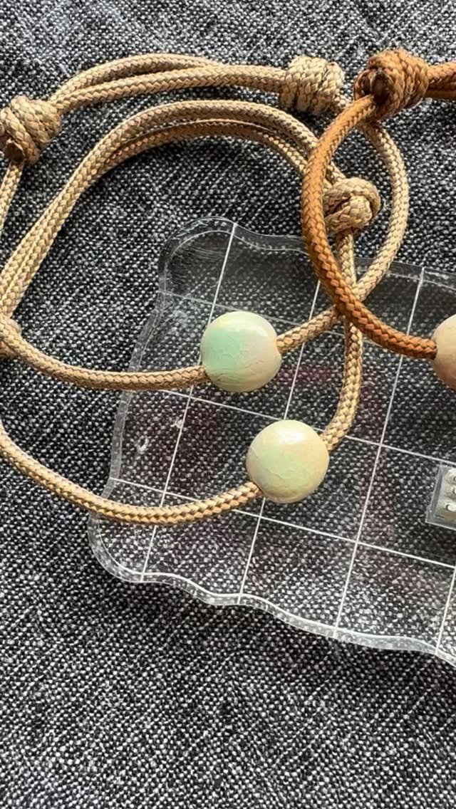 Handmade ceramic dot + adjustable nylon cord.